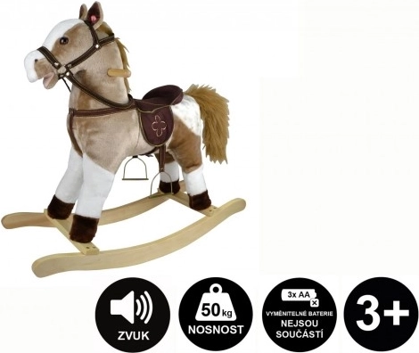 Acest cal balansoar maro deschis, cu pluș moale, este un companion grozav pentru imaginația copiilor. Datorită sunetelor și mișcării cozii, pare realist și îi motivează pe cei mici la joacă activă. Jucăria susține coordonarea mișcărilor, echilibrul și dezvoltă imaginația.