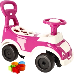 Vehicul multifuncțional 4în1 de la Pilsan combină mersul pe jos, împingătorul, împingerea de către adult și un sorter educativ de forme. Oferă claxon mecanic, spătar detașabil, spațiu de depozitare sub scaun și materiale sigure, non-toxice pentru joacă plină de bucurie și în siguranță.