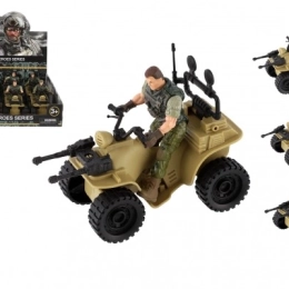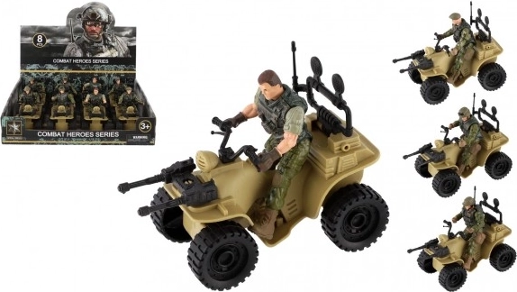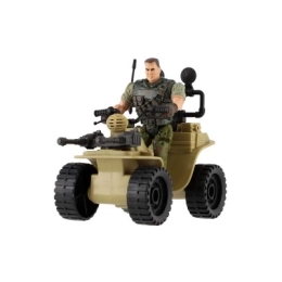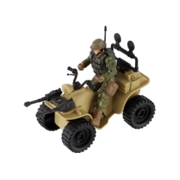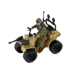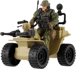 Acest ATV oferă detalii realiste, inclusiv îmbrăcămintea de camuflaj a soldatului și anvelopele mari negre.