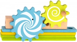 Roțile dințate colorate și piesele de construcție introduc principiile mecanicii într-un mod distractiv și stimulează creativitatea.