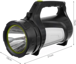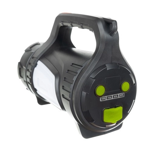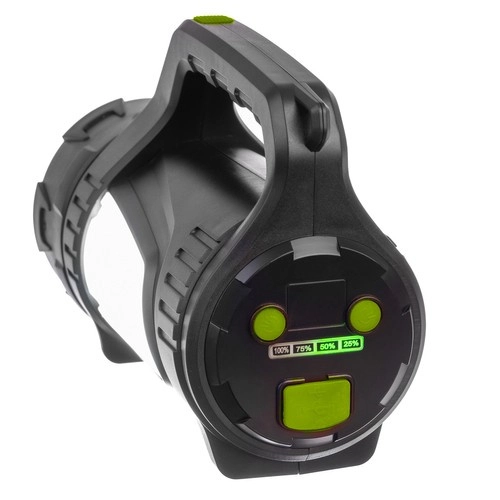 Acest reflector LED portabil, robust, este conceput pentru iluminare fiabilă atât pe teren, cât și acasă. Oferă până la 1200 lumeni cu fascicul concentrat pentru o rază lungă de aproximativ 500 de metri și indicatori LED clari ai nivelului bateriei pe panoul din spate. Construcția durabilă este rezistentă la apă și praf, iar corpul ranforsat suportă mai bine șocurile și utilizarea intensă.