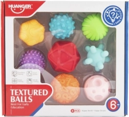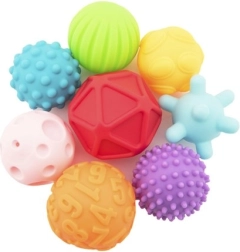 Acest set de mingi texturate este ideal pentru copii de la șase luni. Sunt realizate din material siliconic care oferă o atingere plăcută și permite o prindere ușoară. Texturile variate pe suprafața mingilor stimulează percepția senzorială.