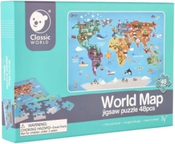 Puzzle-ul conține culori vibrante care atrag atenția și ușurează orientarea copiilor pe harta lumii.