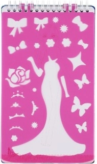 - Conținutul pachetului: caiet de schițe cu spirală, 2 pagini ștergibile, 4 foi cu șabloane, 30 de pagini cu siluetă de bază