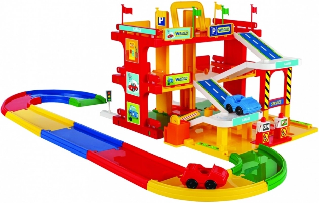 Garaż pe trei etaje cu lift, spălătorie auto și stație de alimentare pentru o experiență de joc completă.