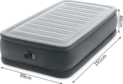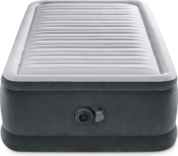 Patul gonflabil Intex Deluxe este o alegere excelentă pentru oaspeți, închiriere sau vacanță. Construcția înălțată de 46 cm facilitează ridicarea, iar suprafața moale, flocată, oferă o senzație plăcută la atingere și o fixare sigură a cearșafului. Întăriturile interne Fiber-Tech din fibre de poliester rezistente mențin salteaua fermă și stabilă dimensional, în timp ce sistemul Dura-Beam distribuie uniform greutatea și susține alinierea corectă a coloanei.