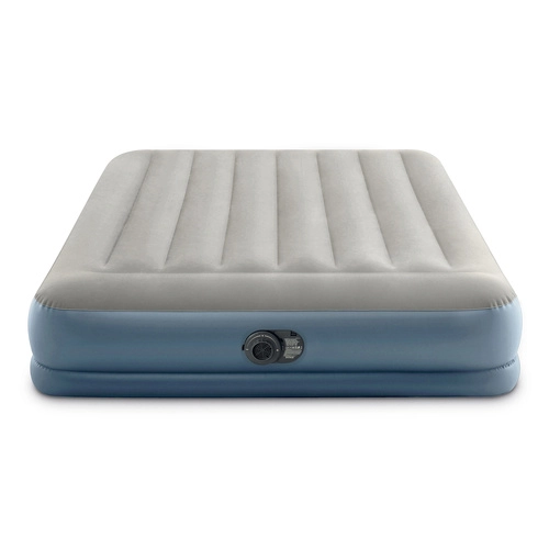 Saltea gonflabilă dublă INTEX cu tehnologia Dura-Beam Fiber-Tech oferă susținere fermă, suprafață catifelată din velur și umflare/degonflare rapidă datorită pompei electrice integrate în aproximativ 3 minute. Ideală ca pat confortabil pentru oaspeți, pentru casă sau camping, cu capacitate de până la 272 kg și depozitare ușoară.