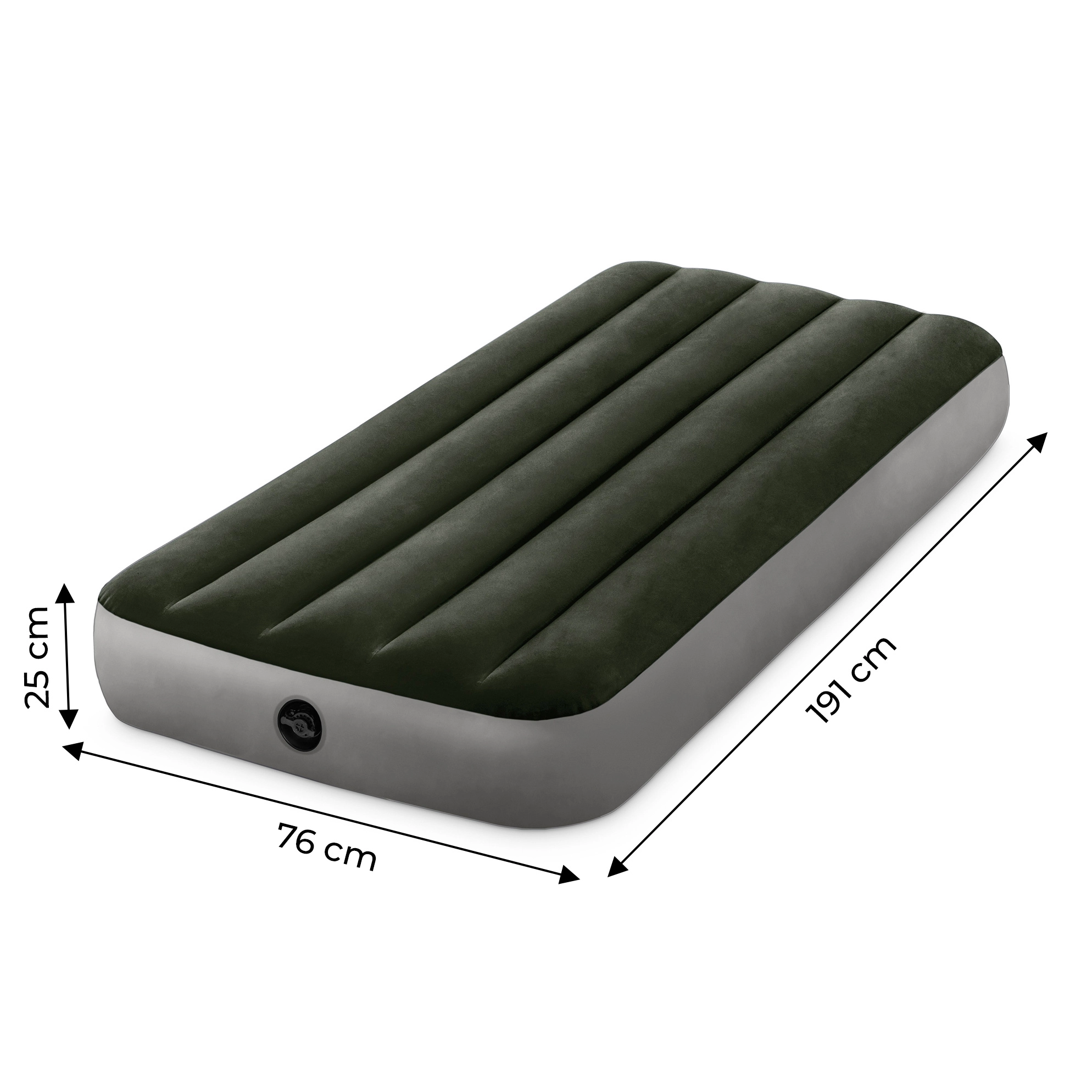 Bucurați-vă de confort în călătorii sau acasă cu această saltea gonflabilă de la marca Intex. Cu dimensiunile 191x76x25 cm este perfectă pentru copii sau persoane singure în călătorii, fie la hotel sau camping. Fabricată din PVC durabil și acoperită cu velur rezistent la apă.