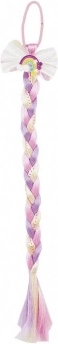 Elasticul de păr cu fundă și coadă colorată este accesoriul ideal pentru micile prințese. Această coamă curcubeu conferă oricărei coafuri un look vesel și original.