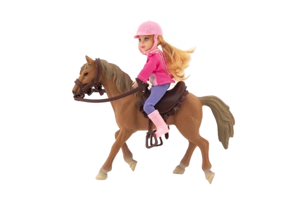 Descoperă farmecul lumii echitației cu acest set adorabil pentru micile iubitoare de cai. Păpușa jocheu în ținută de călărie cu cască și căluțul ei cu coamă lungă oferă o experiență de joc realistă. Jucăria este realizată din plastic de calitate și rezistent, este sigură pentru copiii de la 3 ani și, datorită dimensiunilor compacte, se transportă ușor.