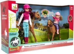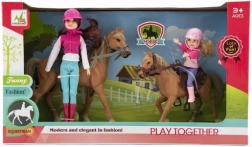 Acest set uimitor este alegerea ideală pentru orice copil care iubește caii și visează să devină călăreț. Setul include două păpuși îmbrăcate în echipament de călărie, inclusiv căști, pregătite pentru aventuri. Materialele de calitate și durabile asigură că setul va rezista chiar și celor mai intense jocuri.