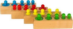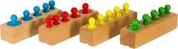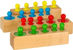 În timpul jocului, copiii își exersează motricitatea fină, concentrarea și primele abilități matematice. Cilindrii pot fi folosiți și ca greutăți pentru balanță în jocurile de-a magazinul, astfel încât o singură jucărie oferă numeroase modalități de utilizare și distracție fără sfârșit.