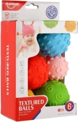 Fiecare mingiuță scârțâie atunci când este apăsată, motivând copiii la joacă, întărind priza și dezvoltând percepția auditivă.