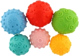 Acest set versatil de mingi senzoriale este o alegere excelentă pentru bebeluși și toddleri încă de la vârste fragede. Datorită texturilor, culorilor și mărimilor diferite, copiii explorează natural lumea prin atingere și își îmbunătățesc coordonarea mână–ochi. Mingiile sunt moi, plăcute la mână și, la strângere, emit un sunet scârțâit care stimulează curiozitatea și bucuria jocului.