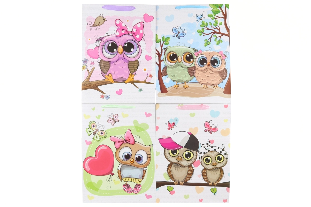 Această pungă cadou cu îndrăgitul motiv de bufnițe este o alegere excelentă pentru zile de naștere, sărbători și petreceri în familie. Datorită dimensiunilor mai mari, poate cuprinde cu ușurință cărți, haine, jucării sau un set de mici cadouri. Execuția de calitate asigură că darul ajunge la destinație în mod stilat și în siguranță.