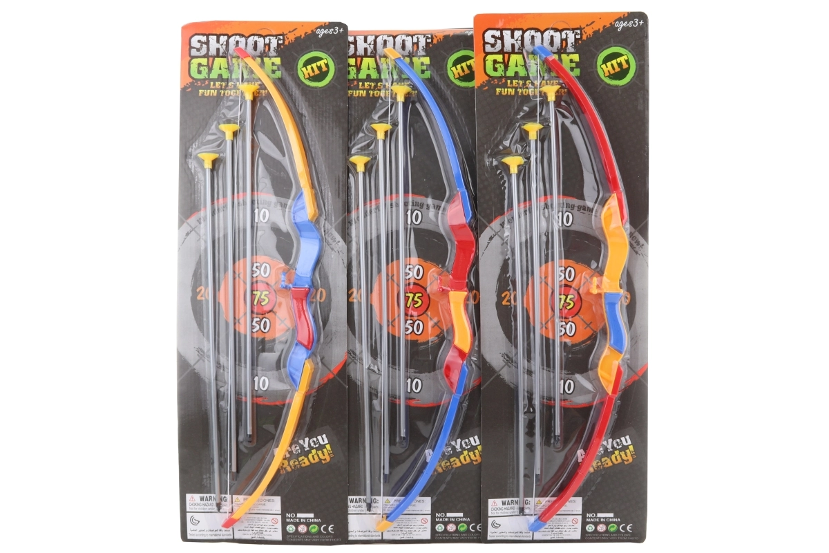- Arc, 3 săgeți cu ventuze, țintă de decupat din carton