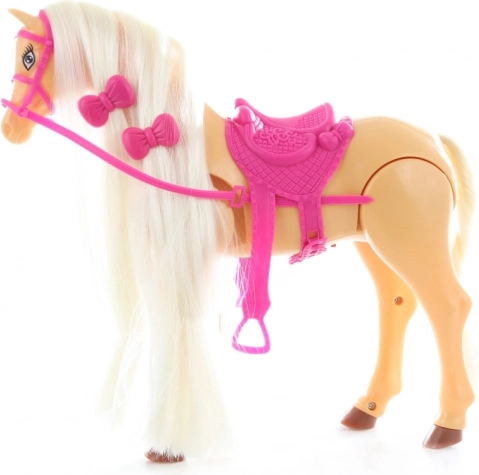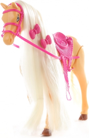 Cu șa și căpăstru roz, acest cal aduce o notă de fantezie în camera de joacă a copiilor.