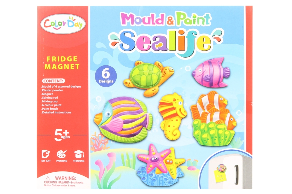 Descoperiți creația distractivă cu motive marine! Datorită setului practic, prin turnare veți realiza până la 6 magneți originali din ipsos, pe care îi veți colora apoi cu culorile incluse. Procedura simplă și instrucțiunile clare asigură că se vor bucura de activitate atât începătorii, cât și micii artiști.