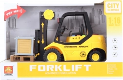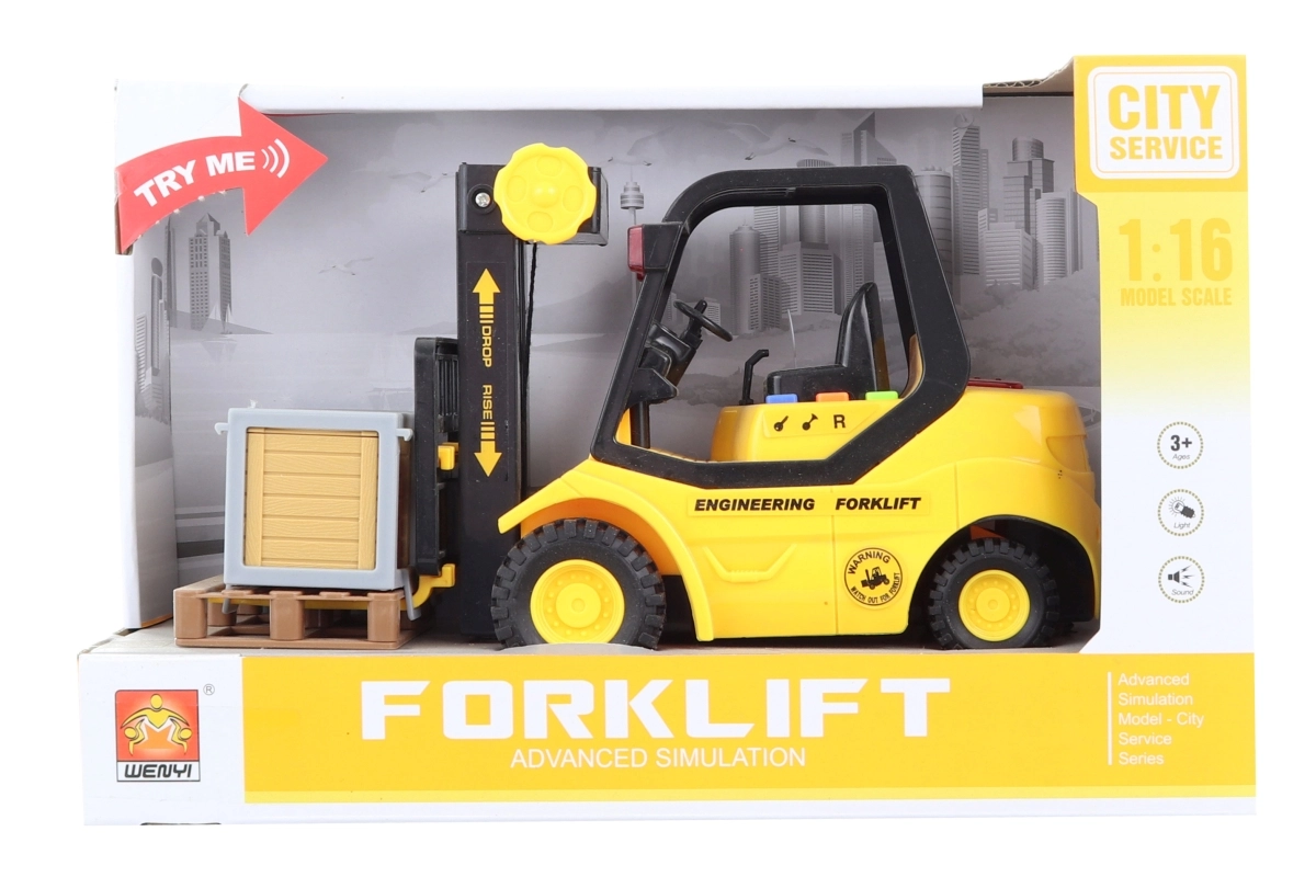 Acest stivuitor electric detaliat oferă copiilor multă distracție și dezvoltare a motricității. Datorită efectelor luminoase și sonore, modelul de jucărie pare foarte realist și încurajează jocul creativ.