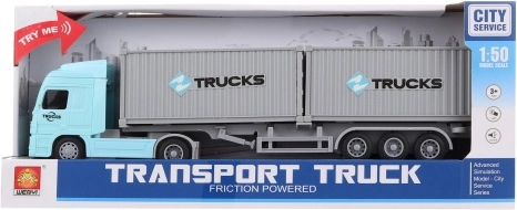 Acest camion de plastic este echipat cu containere pentru transport și oferă lumini și sunete realiste la apăsarea unui buton. Pachetul include și baterii 3x AG13/LR44, astfel încât copiii să poată începe să se joace imediat după despachetare. Dimensiunile pachetului sunt 36,5 x 15 x 7,5 cm, asigurând ușurința depozitării și transportului.