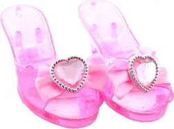 Pantofiori roz cu toc înalt, decorați cu inimioare și fundițe sunt ideali pentru orice mică prințesă.