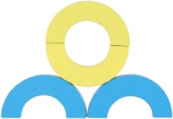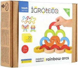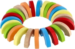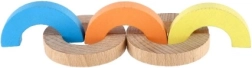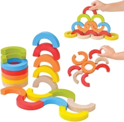 Arcadele curcubeu și semicercurile pot fi aranjate în turnuri, poduri și provocări de echilibru. Astfel, copiii își dezvoltă concentrarea, stabilitatea și percepția spațială.