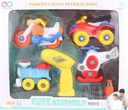 Cu acest set de asamblare vehicule copilul tău va experimenta ore de distracție și învățare. Datorită burghiului inclus cu baterii (2 AA, bateriile nu sunt incluse), copiii pot asambla și dezasambla singuri jucăriile, ceea ce susține dezvoltarea abilităților motorii fine.