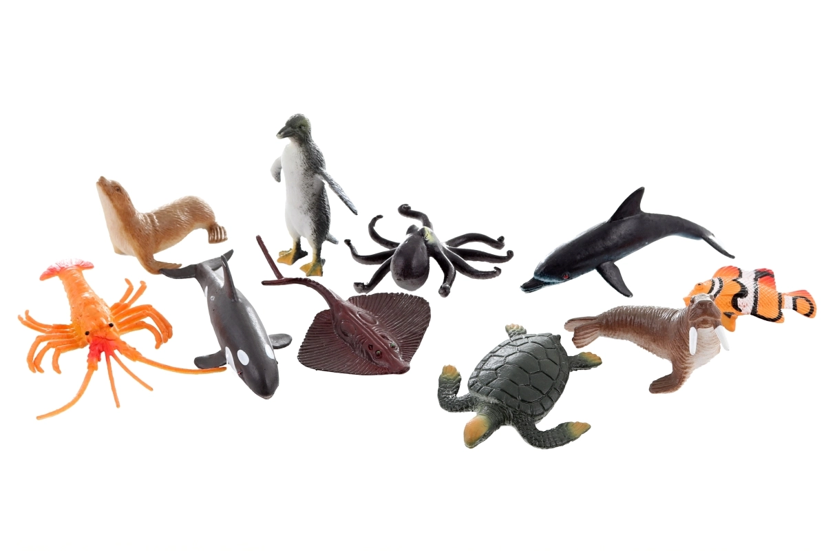 Acest set de animale marine oferă copiilor o explorare distractivă a oceanelor. Include specii îndrăgite precum broască țestoasă, delfin, orcă, homar, leu de mare, pinguin, pește, focă, caracatiță și pisică de mare. Figurinele sunt ușoare, rezistente și ușor de strâns – ideale pentru joaca zilnică și activități tematice.