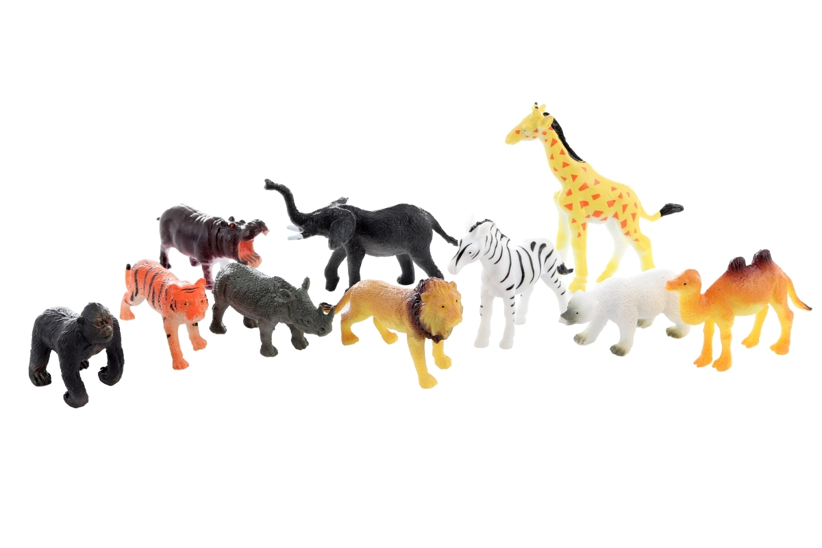 Acest set include animale sălbatice îndrăgite de copii: leu, girafă, elefant, tigru, rinocer, zebră, gorilă, cămilă, urs polar și hipopotam. Figurinele sunt din plastic rezistent, au o dimensiune plăcută pentru mâinile mici și susțin dezvoltarea imaginației, a vocabularului și a motricității fine.