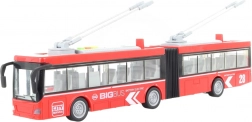Troleibuzul articulat roșu este un complement perfect pentru orice mic iubitor de mijloace de transport. Impresionează prin lungimea de 44,3 cm și designul detaliat, care imită fidel vehiculele reale.