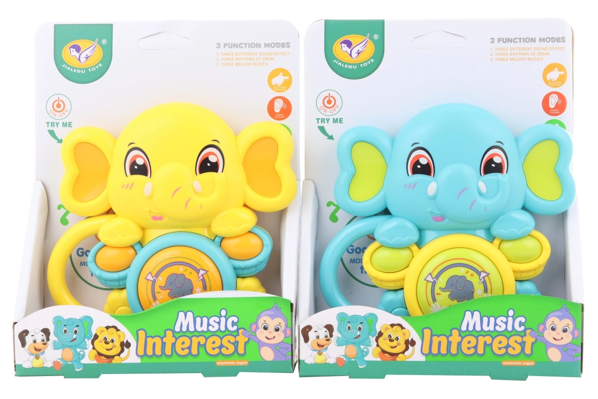 Elefănțelul muzical pentru bebeluși este o jucărie interactivă ideală pentru copii de la 12 luni. Printr-o simplă apăsare a tobei pornesc 9 melodii și sunete diferite, care stimulează curiozitatea și ajută la dezvoltarea simțurilor. Dimensiunile compacte le permit copiilor să prindă jucăria confortabil și să o ia oriunde cu ei.
