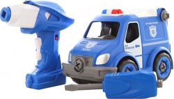 Distractivă și creativă, mașina de poliție cu șuruburi, cu telecomandă dezvoltă motricitatea fină și imaginația. Copiii pot asambla vehiculul cu o șurubelniță sau o bormașină, scot motorul din bormașină și îl introduc în mașină, care apoi se deplasează înainte și înapoi. Nu lipsesc efectele sonore, construcția robustă și designul atractiv de poliție pentru copii de la 3 ani.