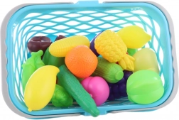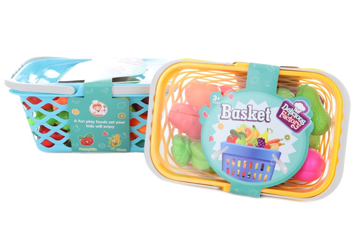 Acest set colorat de fructe și legume din plastic, în coș, îi va încânta pe toți micii pasionați de gătit și cumpărături. Coșul cu grilaj de aerisire și capac servește ca spațiu de depozitare și geantă de transport practică, astfel încât copiii își pot lua echipamentul la orice joacă.