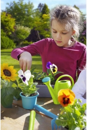 Cu acest set, copiii pot învăța bazele grădinăritului și, în același timp, se pot distra în aer liber cultivându-și propriile plante în ghivece colorate.