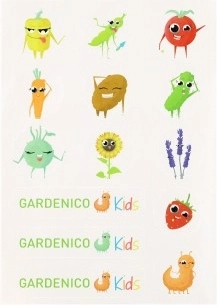 Setul include abțibilduri Gardenico Kids care stimulează creativitatea și îi ajută pe cei mici să învețe despre plante într-un mod ludic.