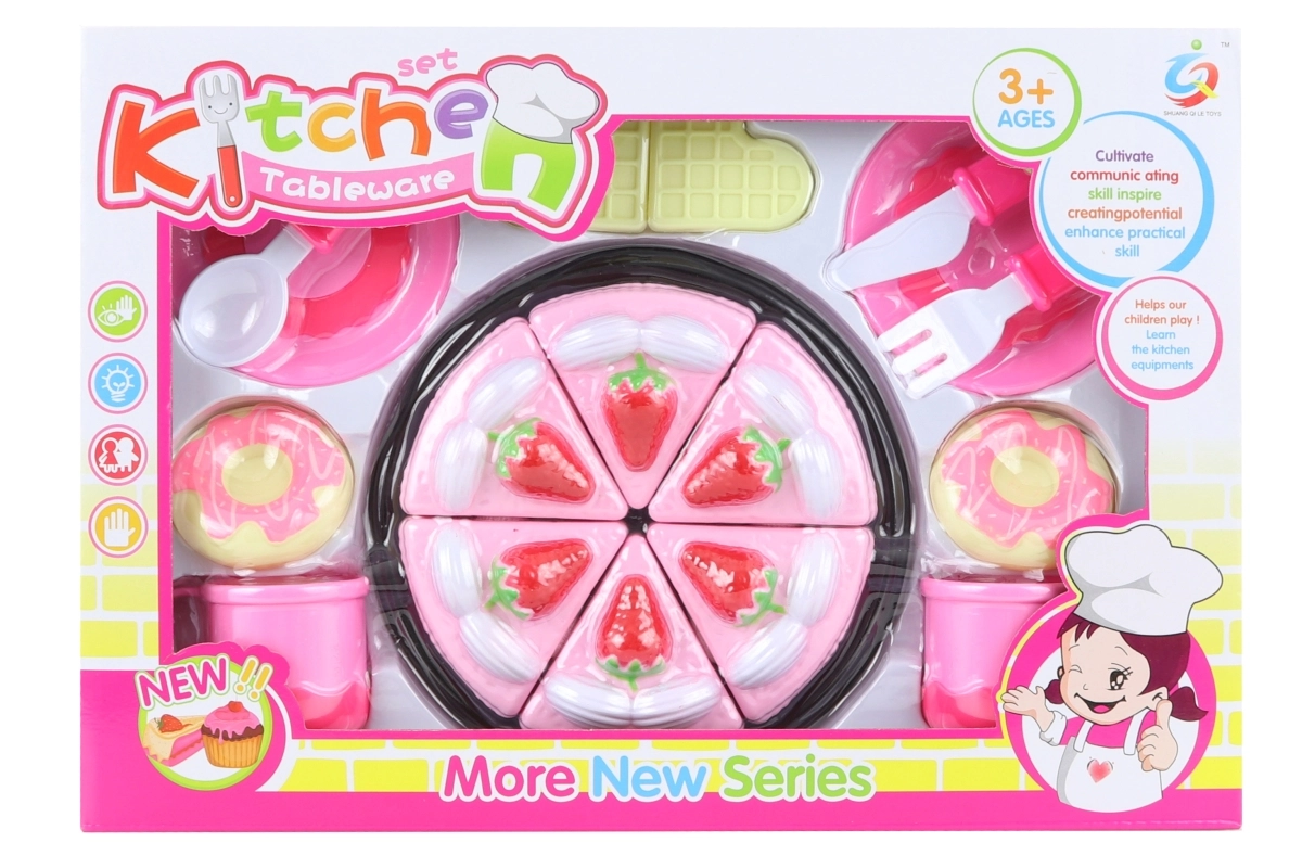 În pachet găsiți un tort realist cu diametrul de cca 15 cm, care poate fi „tăiat” și reasamblat, două cești, două farfurii, prăjiturele și tacâmuri pentru o servire completă. Întregul pachet are dimensiunile de cca 35 × 24 × 7 cm, ceea ce face setul ușor de transportat și potrivit și pentru călătorii.