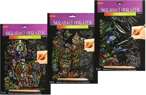 Imaginile de zgâriat ArtLover sunt ideale pentru dezvoltarea creativității. Hârtia acoperită cu un strat negru ascunde un efect curcubeu minunat, care îți transformă desenele într-o experiență vizuală unică. Pași simpli asigură distracția pentru toate categoriile de vârstă: