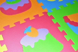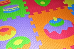 Acest puzzle din spumă cu motiv alimentar este ideal ca covoraș de joacă pentru camera copilului. Datorită materialului moale este sigur, plăcut la atingere și ușor de întreținut. Suprafața striată asigură o stabilitate mai bună în timpul jocului și minimizează alunecarea.