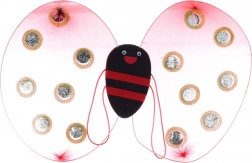 Setul cuprinde aripi translucide roz-roșii cu buline sclipitoare, fustă elastică în dungi roșu-negru, bentiță cu antene elastice și baghetă asortată cu panglici. Mărimea setului este concepută pentru copii de la 3 ani; dimensiunea ambalajului aprox. 49 × 57 cm.