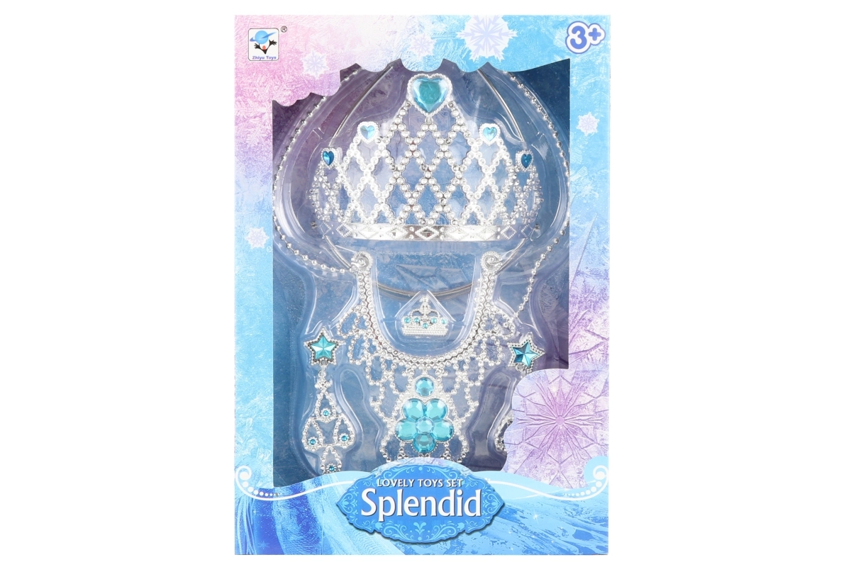Acest set elegant de accesorii transformă orice copil într-o mică prințesă. Coronița ușoară și confortabilă, împreună cu bijuteriile strălucitoare, completează perfect costumele și jocul de zi cu zi de-a prințesele. Datorită designului sigur, setul este potrivit pentru mâini mici și se pune ușor.