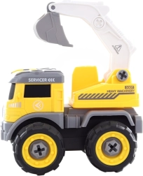 Descoperiți excavatorul multifuncțional cu șuruburi, care îmbină construcția creativă și condusul dinamic. Copiii își asamblează singuri vehiculul cu șurubelnița sau bormașina incluse, din care se poate scoate motorul. După introducerea motorului în vehicul, jucăria devine o mașină telecomandată cu mers înainte și înapoi.