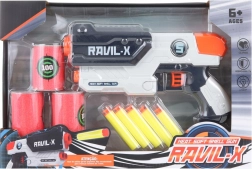 - Pistol, 5× cartuș din spumă, 3× cilindru din spumă (țintă)