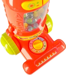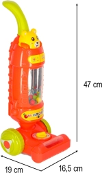 Acest aspirator vertical pentru copii, în culoare zmeuriu, este o jucărie ideală pentru micii ajutoare în gospodărie. Datorită efectelor luminoase și sonore, pare un aparat real și le oferă copiilor senzația că participă la activitățile zilnice. În interior se află biluțe colorate care se ridică și cad în timpul funcționării, făcând jocul și mai atractiv.