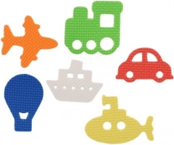 Descoperiți lumea transportului chiar în cadă. Acest set distractiv include avion, tren, navă, mașină, balon cu aer cald și submarin. Piesele din spumă plutesc la suprafață, iar după umezire aderă pe suprafețe netede și, datorită culorilor vii, invită la joacă creativă.