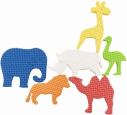 În set găsiți 6 locuitori îndrăgiți ai grădinii zoologice – elefant, leu, cămilă, struț, rinocer și girafă. Materialul este ușor și plăcut la atingere, autocolantele se usucă rapid și sunt ideale pentru joacă repetată.