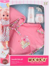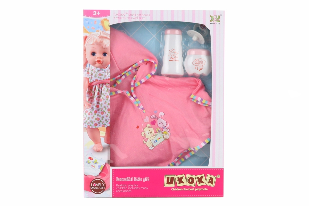 Acest set universal de accesorii pentru o păpușă de 45 cm este un plus grozav pentru orice colecție de jucării. Datorită poncho-ului, suzetei și sticluțelor, copiii se pot juca de-a îngrijirea bebelușului și își pot dezvolta imaginația.