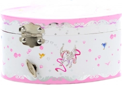 Această fermecătoare cutie muzicală pentru bijuterii, în formă de inimă, este locul ideal pentru depozitarea inelelor, cerceilor și a micilor comori. După întoarcerea cheiței, în interior pornește o melodie, iar micuța balerină începe să se rotească elegant în fața oglinzii. Designul în nuanțe de roz, cu motive delicate, îi va încânta atât pe copii, cât și pe adulți.