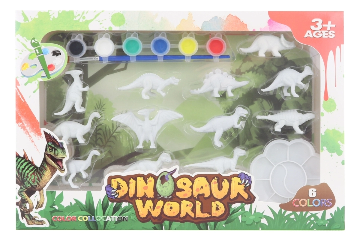 Setul conține dinozauri 3D, 6 culori, pensulă și paletă – copiii pot începe să creeze imediat, fără a cumpăra materiale suplimentare.