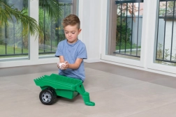 Datorită construcției solide și robuste, remorca este excelentă pentru transportul jucăriilor, nisipului sau micilor comori. Timona înaltă asigură că remorca stă aproape orizontal chiar și singură, ceea ce ușurează încărcarea și descărcarea.