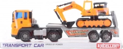 Camion din plastic cu excavator, cu dimensiuni de aproximativ 28 x 10,5 x 8 cm. Dimensiunea ambalajului este de aproximativ 32 x 13 x 9 cm. Vârsta 3+.